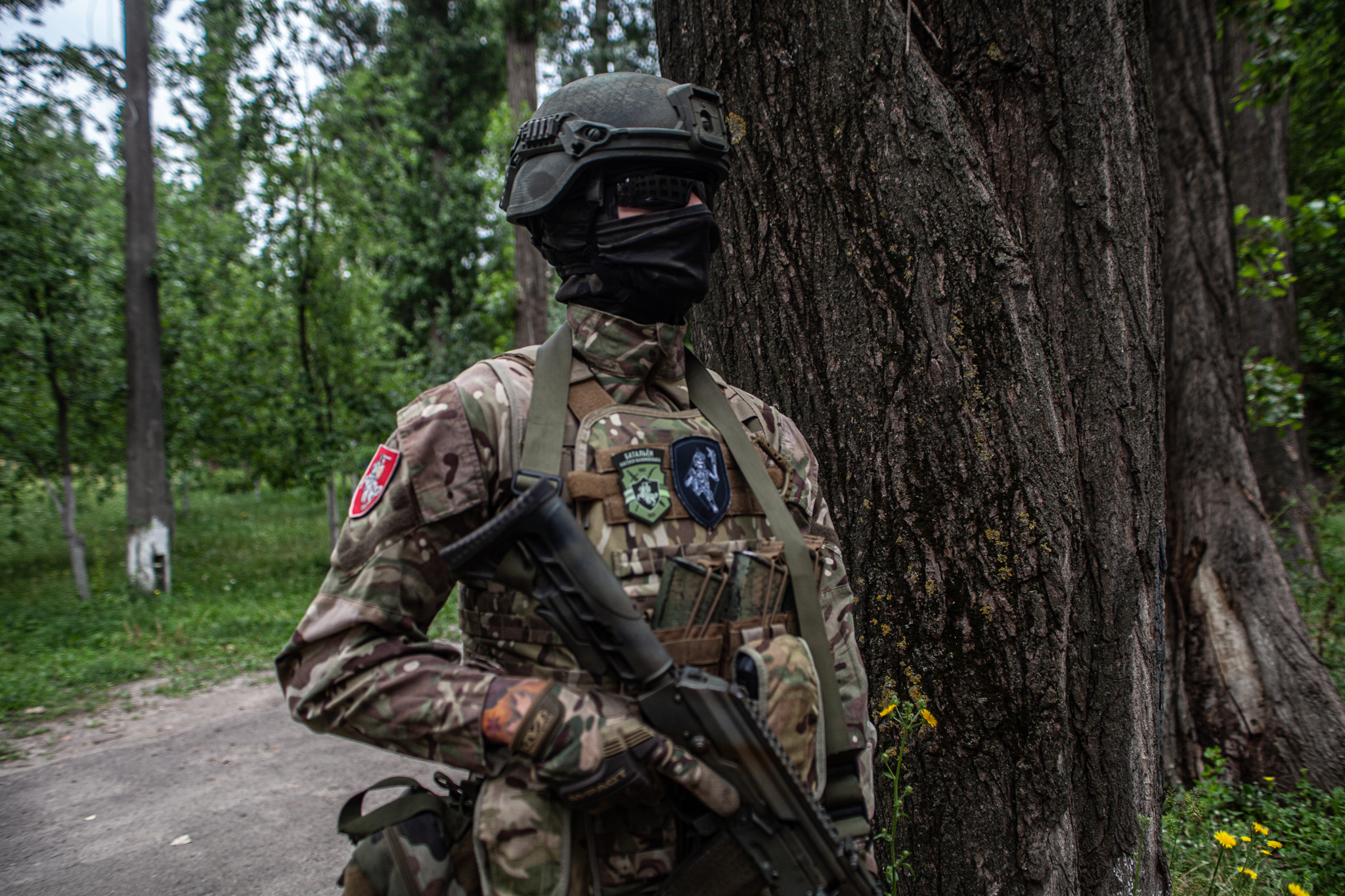 Après quelques semaines de défense de Kiev, des gens ont commencé à nous rejoindre. Beaucoup de gens connaissaient notre existence. En 2020, de nombreuses personnes ont quitté la Biélorussie en raison des répressions. En lien avec cela, depuis la Pologne et d’autres pays, ils ont commencé à venir en Ukraine pour nous rejoindre. Nous avons donc créé une compagnie de Biélorusses. Au début, nous n’avions même pas de nom, juste une unité biélorusse sous le commandement des forces de défense territoriale d’Azov. Et petit à petit, nous sommes devenus un bataillon. Puis nous avons dit à Azov que nous étions un peu trop nombreux : un bataillon dans un bataillon, grosso modo. Nous avons honoré notre responsabilité pour le peuple, alors on nous a proposé un service contractuel. Pour nous, c’était très important. Nous avons remercié les gars d’Azov de nous avoir hébergés, nous nous sommes dit que nous nous rencontrerions de nouveau sur les points chauds, mais que maintenant nous étions obligés de créer notre propre famille séparément. Ainsi, nous avons créé un bataillon sous contrat avec les Forces Armées d’Ukraine, l’expansion a continué, et tout récemment, nous avons annoncé la formation d’un régiment. Le régiment a désormais deux bataillons qui effectuent des missions dans différents secteurs au front.