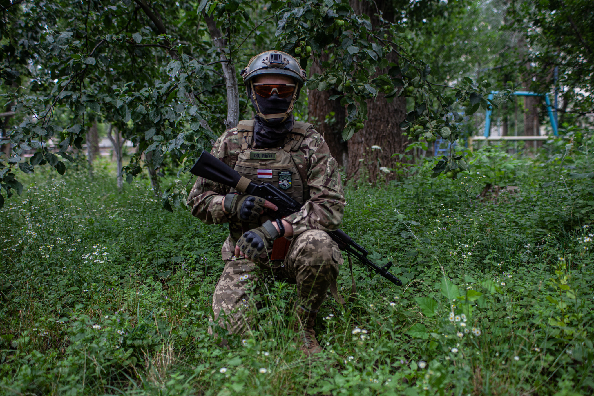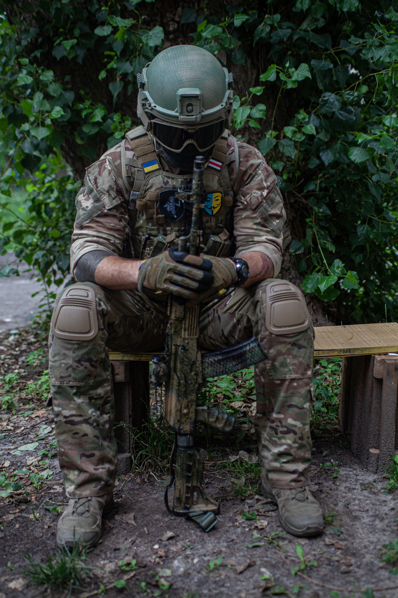 L’armement du régiment est à son summum. Récemment, nous avons été équipés de fusils SCAR. Nous avons aussi des Javelins et d’autres armes modernes. Personnellement, je pense que le Lend-Lease fonctionne. Ils nous proposent par exemple de rédiger une liste d’armes que nous aimerions recevoir à l’avenir. Si elles sont livrées à l’Ukraine, notre régiment en recevra également une certaine quantité. L’ensemble du calibre que nous utilisons actuellement est à 90 % du calibre OTAN : 5.56, 308, 338. Le sniper Dragunov et l’AK n’ont pas complètement disparu. Merci aux pays du monde occidental de nous donner la possibilité de nous battre avec de nouvelles armes.